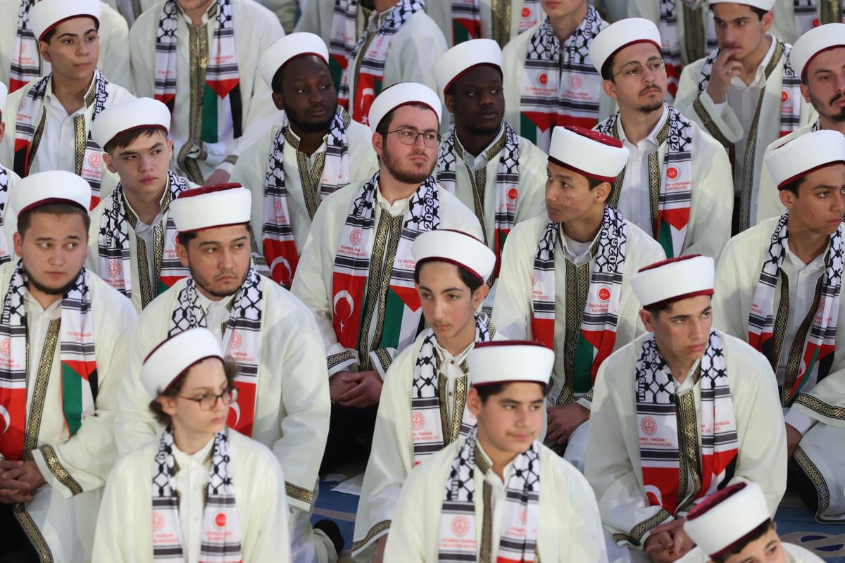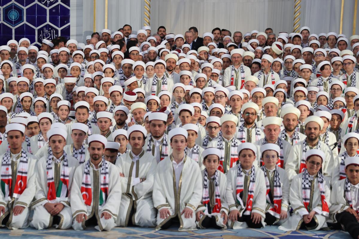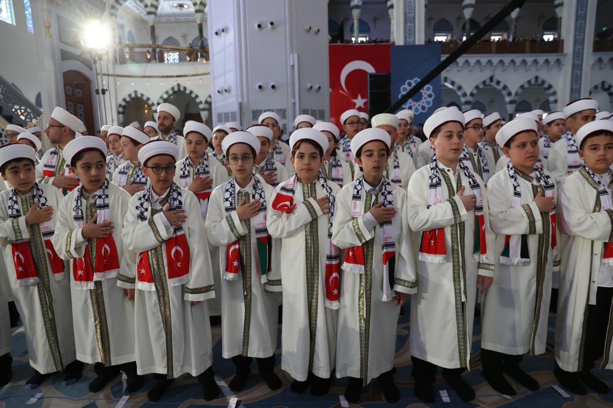 Öğrencilerin üzerinde Türk ve Filistin bayrağı bulunan atkıları takarak katıldığı program, Kur'an-ı Kerim tilavetiyle başladı. Cumhurbaşkanımız Erdoğan, burada Aşr-ı Şerif okurken, reisülkurra Mustafa Demirkan törende dua etti.