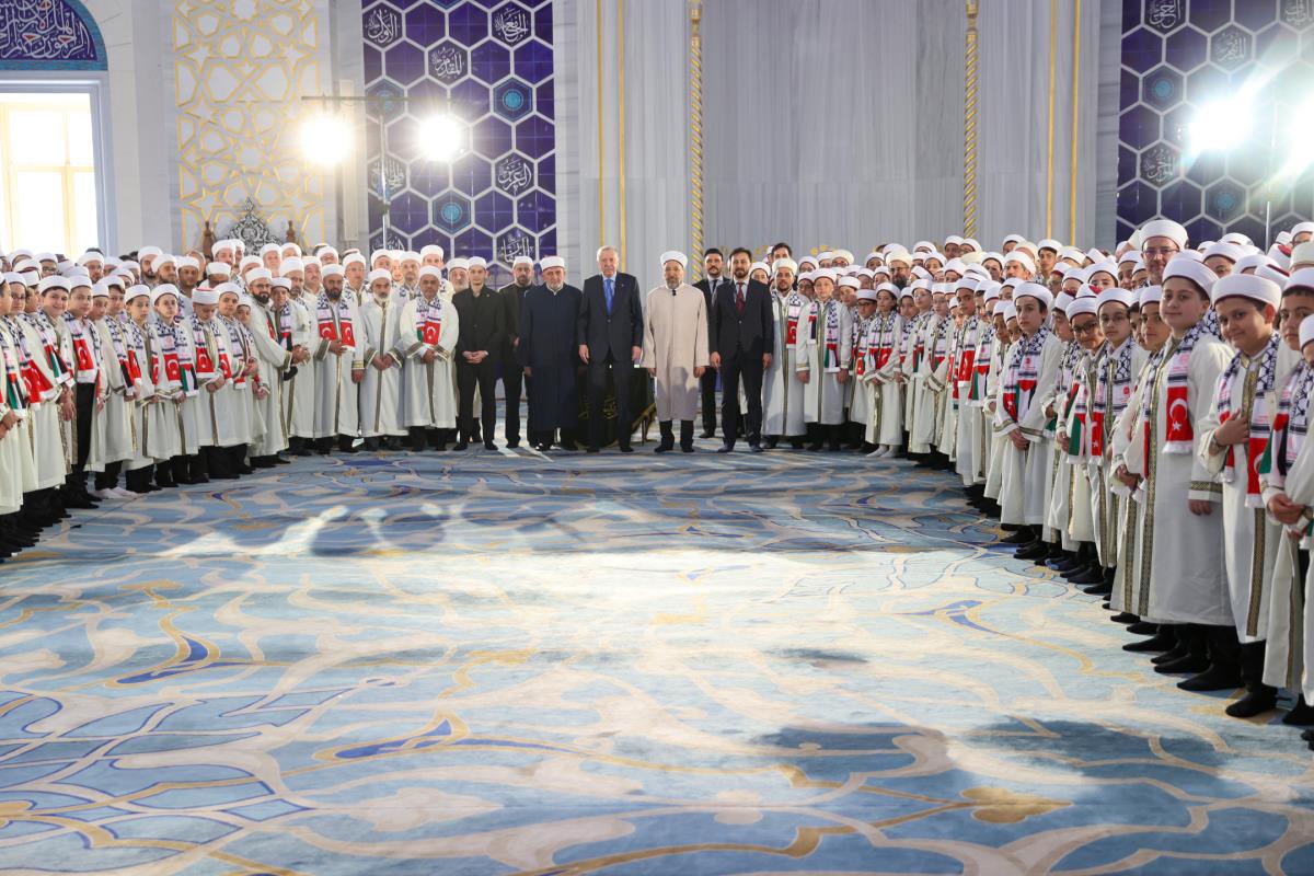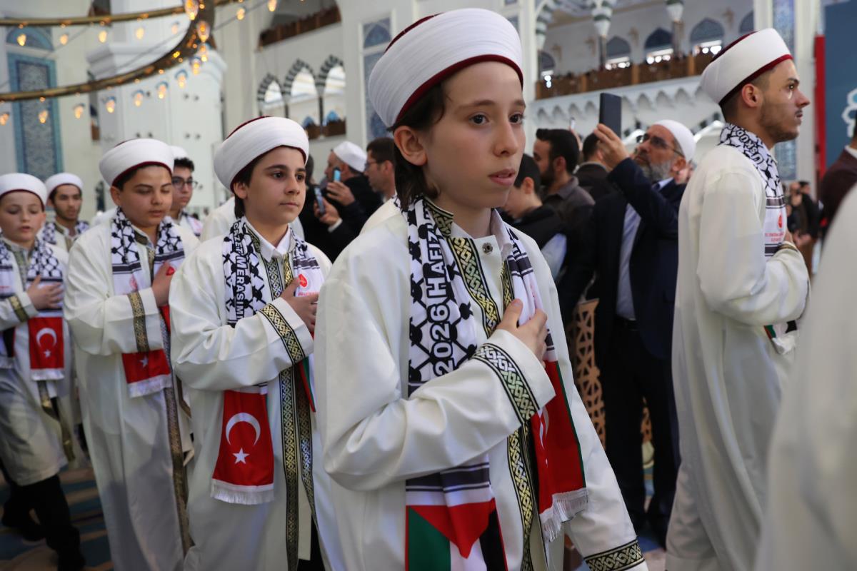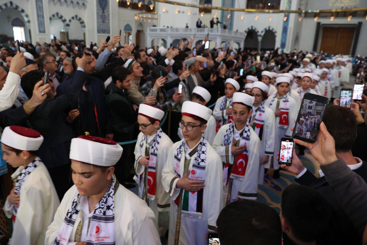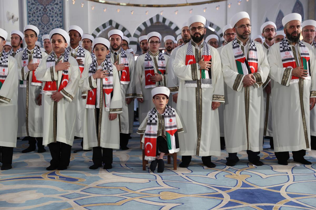 Öğrencilerin üzerinde Türk ve Filistin bayrağı bulunan atkıları takarak katıldığı program, Kur'an-ı Kerim tilavetiyle başladı. Cumhurbaşkanımız Erdoğan, burada Aşr-ı Şerif okurken, reisülkurra Mustafa Demirkan törende dua etti.